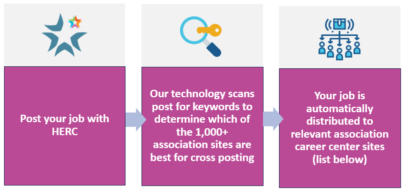 All HERC members' jobs are filtered through the HERC Distribution Network and are crossposted to an average of 3 other job boards at an average value of $270 per posting. Member employers can access their job board account and review where individual jobs are distributed (watch the tutorial).
